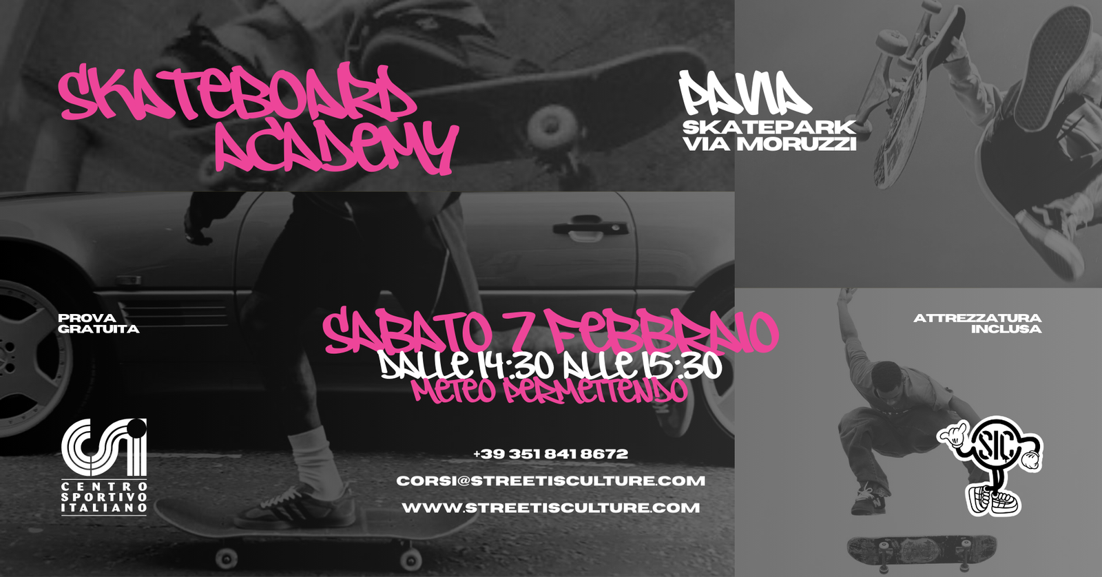 Street is Culture è un’iniziativa aperta a tutte le età e completamente gratuita, pensata per promuovere uno stile di vita attivo e il senso di appartenenza alla comunità. Tutte le attività si svolgeranno in un ambiente controllato e sicuro, con l’obiettivo di educare al rispetto degli spazi urbani e di favorire l’incontro tra persone diverse attraverso lo sport.